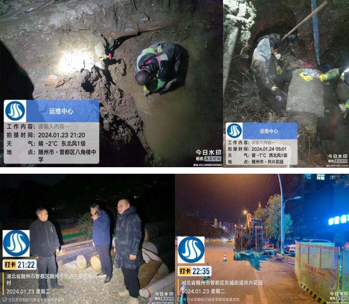 1月23日,有市民反映鐵路片區(qū)下坡處地面有積水,附近有學(xué)校,周邊住戶也較多,對(duì)市民出行造成極大安全隱患。測(cè)漏人員第一時(shí)間到場(chǎng)勘查,排查后發(fā)現(xiàn)漏點(diǎn)在下坡處拆遷區(qū)內(nèi),工作人員及時(shí)與當(dāng)?shù)厣鐓^(qū)居委會(huì)和相關(guān)部門取得聯(lián)系,經(jīng)過多方協(xié)調(diào),滿足施工條件后,立即組織搶修隊(duì)伍進(jìn)行開挖,在寒風(fēng)凜冽的深夜,搶修人員爭分奪秒,全然顧不上他們已凍得通紅的雙手,只希望以最快速度完成改造作業(yè),最大程度減小停水作業(yè)對(duì)居民的影響。當(dāng)晚21點(diǎn)25分歷時(shí)3小時(shí)將DN100管道漏水點(diǎn)搶修完畢,保障了極寒天氣下周邊居民、學(xué)生出行的安全。